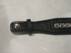 2mm厚のサドルレザーを2枚縫い合わせした本体にピラミッドスタッズを施したサドルレザーを縫い付けてある。