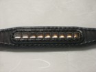 2mm厚のサドルレザーを2枚縫い合わせした本体にピラミッドスタッズを施したサドルレザーを縫い付けてある。