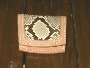 インレイ(異素材の挟み込む技法)にダイヤモンドパイソンを使用した小銭入れです。